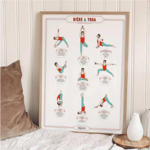 Issue d'une collaboration avec l'illustratrice Bobby Watson, cette affiche vous propose une sélection de postures de Yoga ainsi que la bière conseillée pour l'accompagner. Affiche sans cadre. Taille 50*70cm.